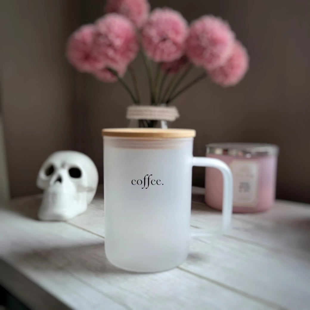 Indulge in a rich and luxurious experience with our premium "coffee." cup. Crafted on a frosted glass, it elevates your coffee drinking routine to a sophisticated level. The perfect balance of function and style, it's designed for the discerning coffee lover who appreciates the finer things in life.