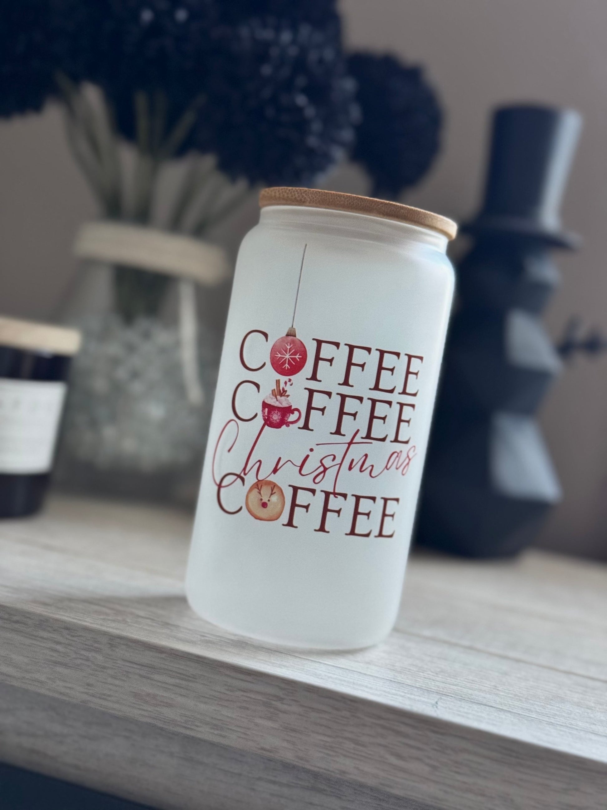Get your caffeine fix with a festive twist! This coffee cup features a playful design, perfect for the holiday season. Enjoy your favorite brew in style with our 'Coffee, Coffee, Christmas, Coffee' cup. Cheers to a jolly and energizing start to your day!