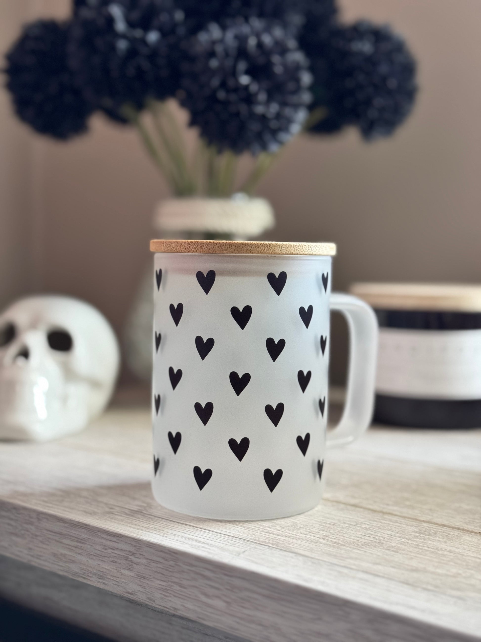 Indulge in some love with our Cup of Hearts! This playful coffee cup features bold black hearts, adding a touch of charm to your daily caffeine fix. Fall in love with your morning routine with this unique Cup of Hearts.