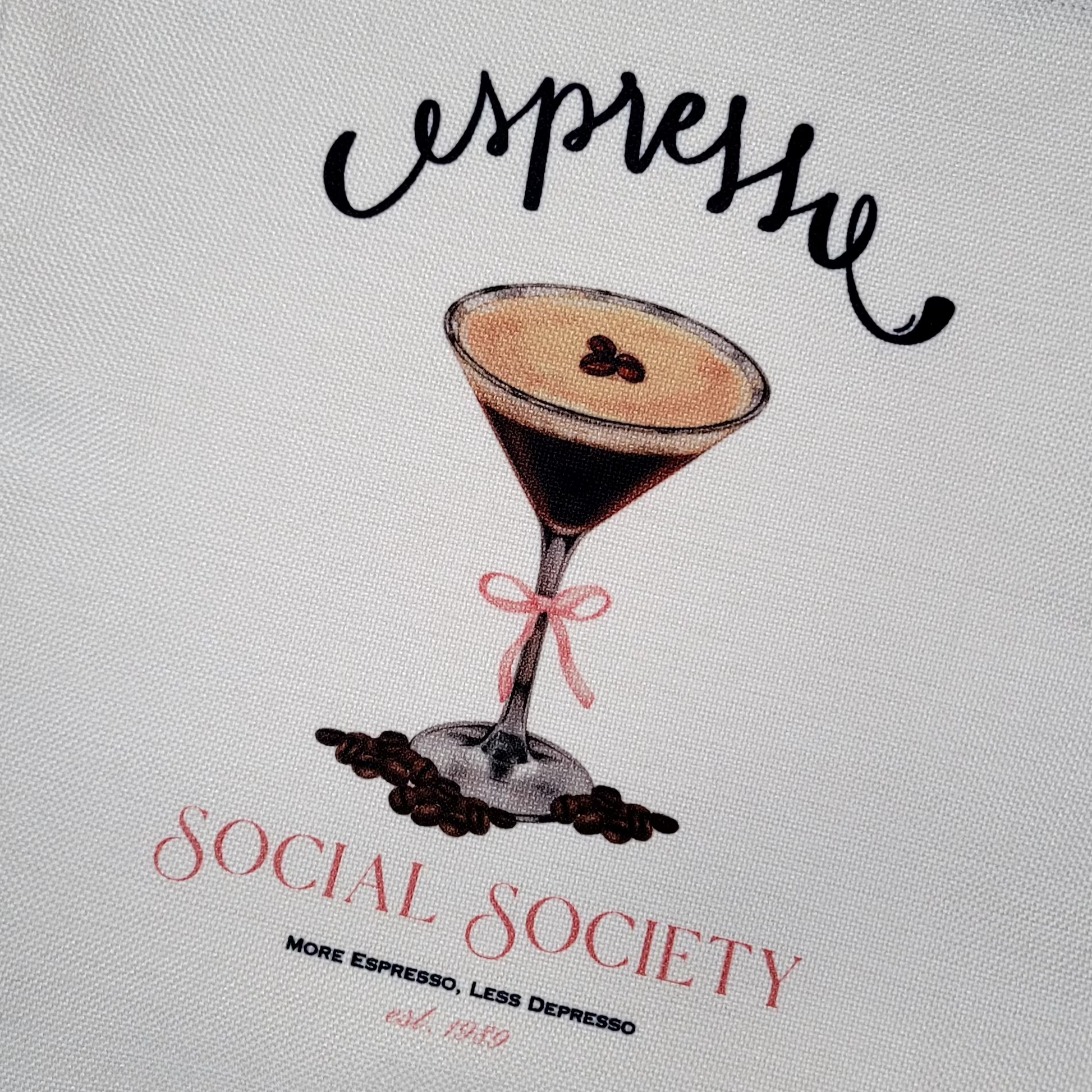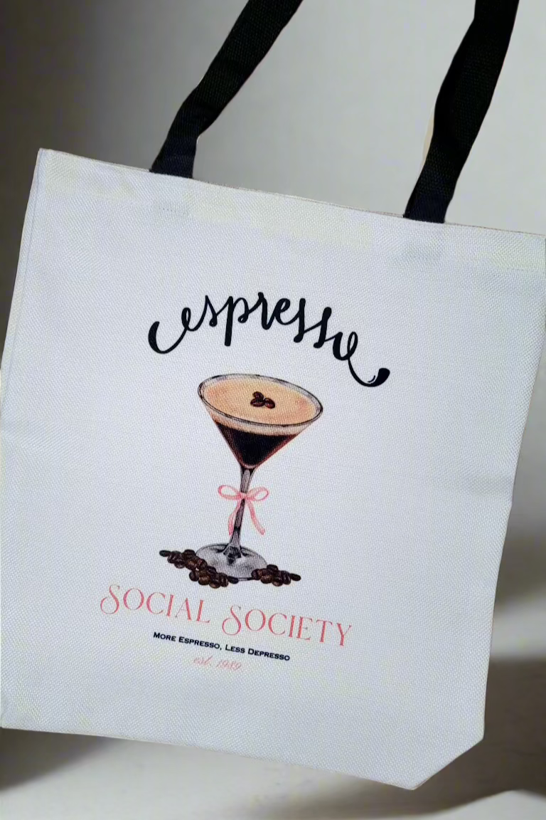 Unleash your inner espresso lover with our Espresso Martini Mood tote! Featuring a martini-inspired design, this tote bag is perfect for carrying all your essentials in style. Satisfy your caffeine cravings and make a statement with this fun accessory!
