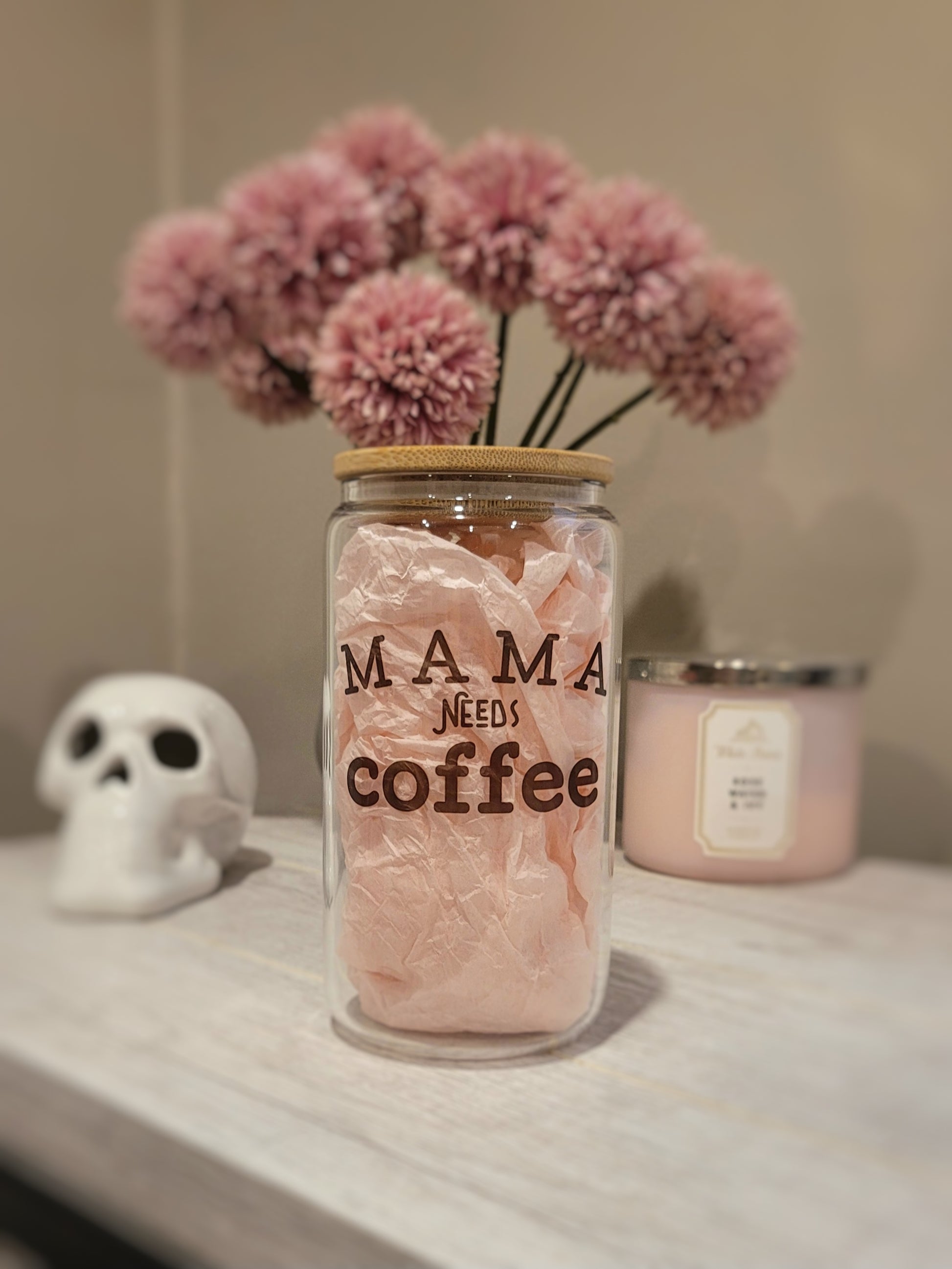 Energize your day with the Mama Needs Coffee glass! Featuring the perfect coffee bean heart for all adventurous coffee-loving mamas! Start your day with a bold statement, and fuel your adventurous spirit with every sip!