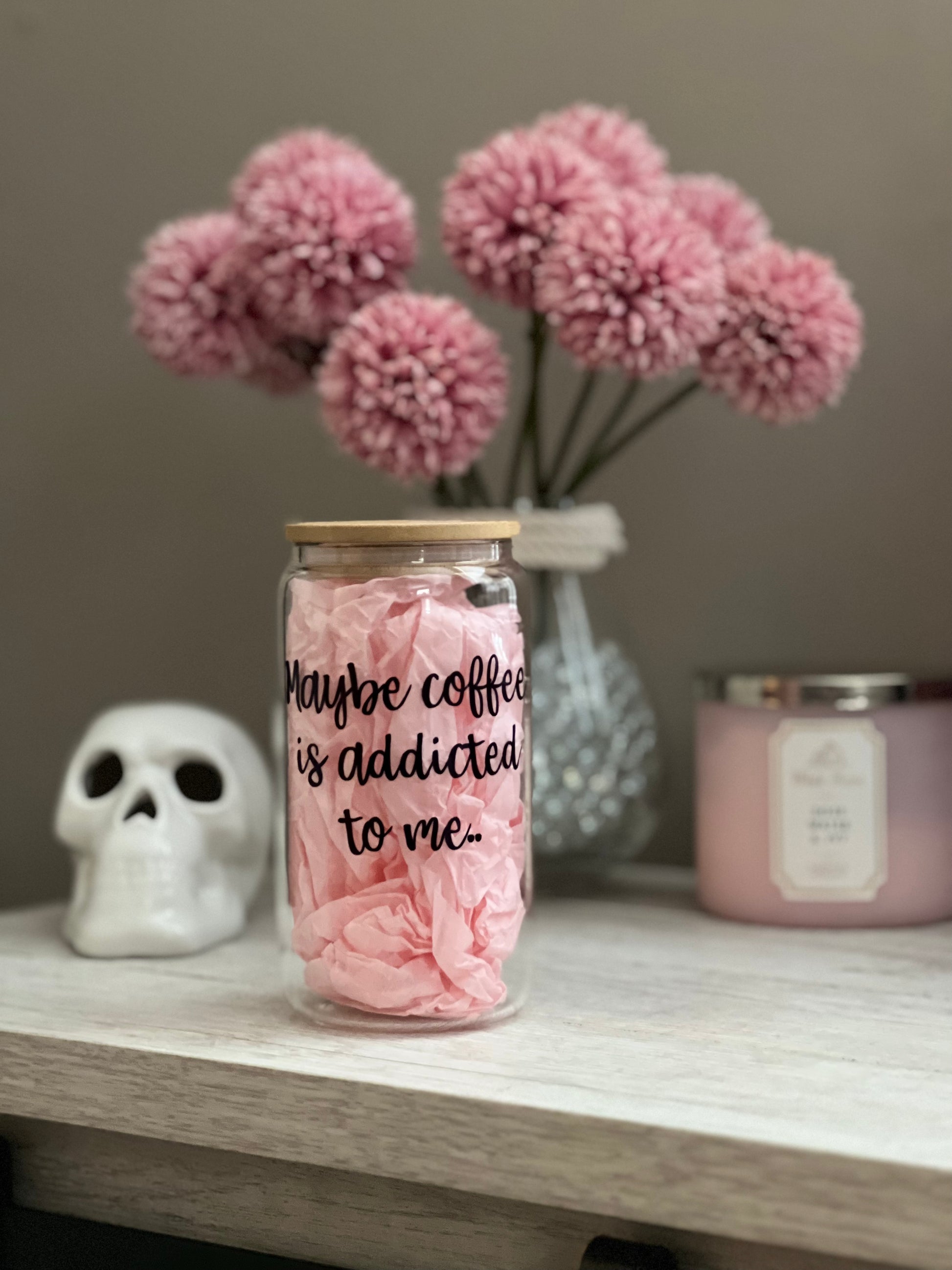 Love coffee so much it's like it's addicted to you? Show your obsession with this Maybe Coffee is Addicted to Me libbey glass. The perfect way to start the morning with a cup of joe and a good laugh!